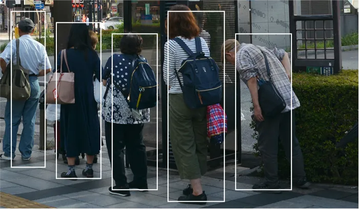 検出対象を視覚的に確認できるよう、映像上に検出枠を表示します。