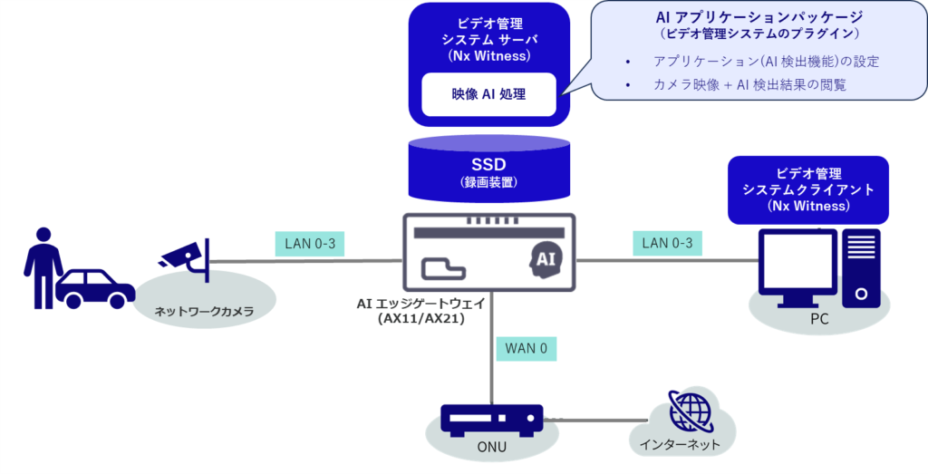 AI アプリケーションパッケージは、ビデオ管理システム(AI エッジゲートウェイに標準プリインストール)のプラグインとして搭載されています。