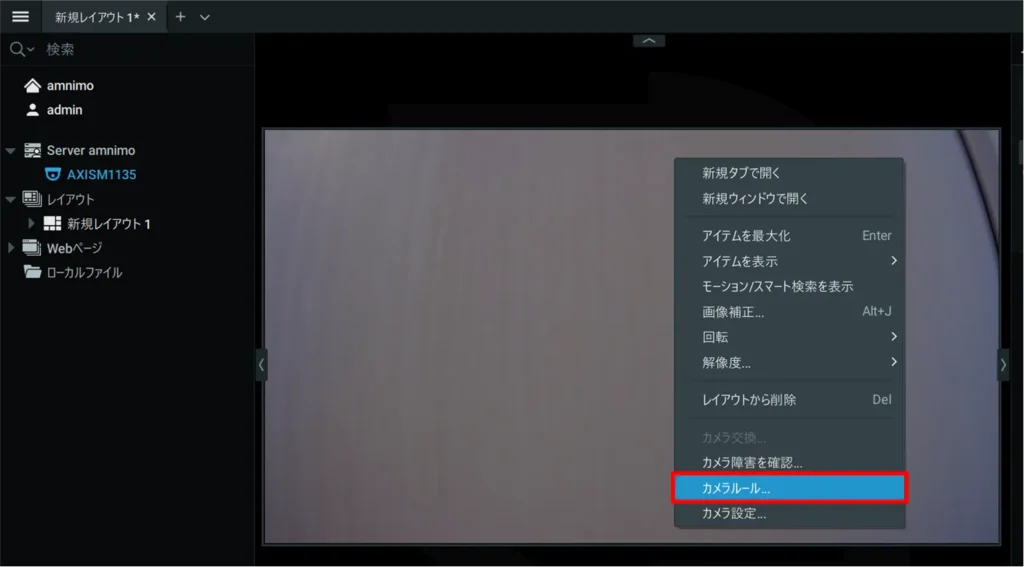 映像を右クリックし、表示されたメニューから[ カメラルール ]をクリックします。