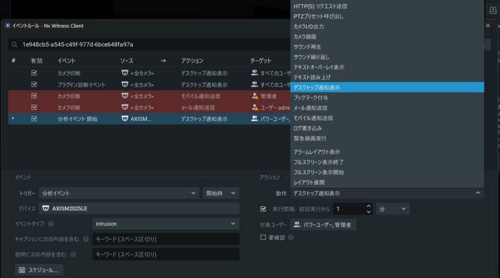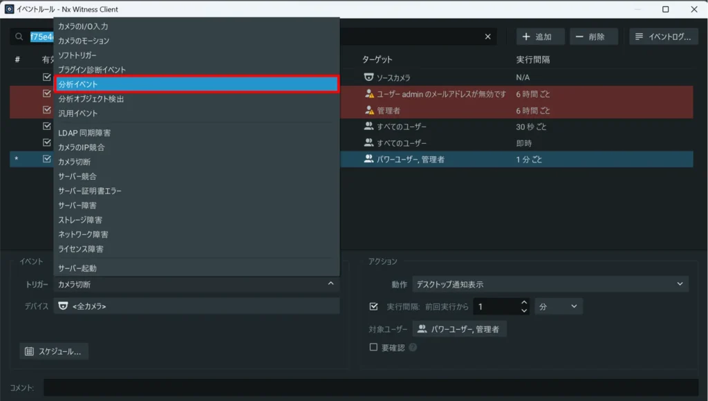 ⇒Nx Witness VMS Guide > イベントルール > サポートされるイベントとアクション