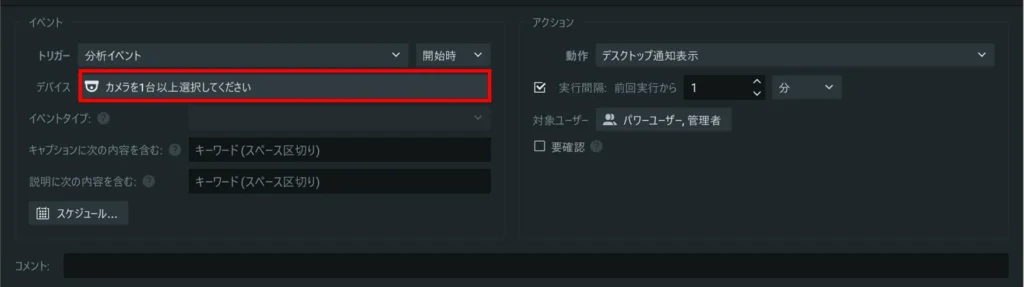 イベントルールの設定項目が表示されます。