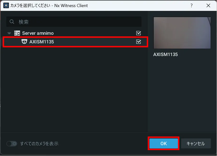 「 カメラを選択してください 」画面にて、イベントルールを適用したいカメラをクリックします。