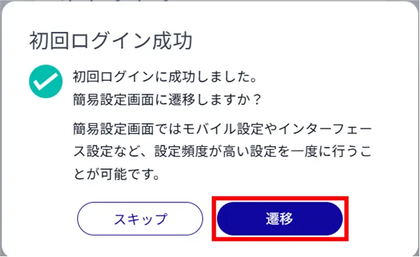 [ 遷移 ]をクリックすると「 簡易設定 」画面に遷移します。
