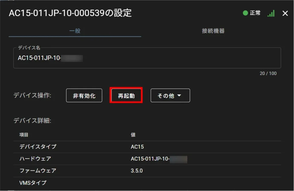 注意事項を確認し、同意事項にチェックを入れて、[ 再起動 ] をクリックすると、再起動されます。