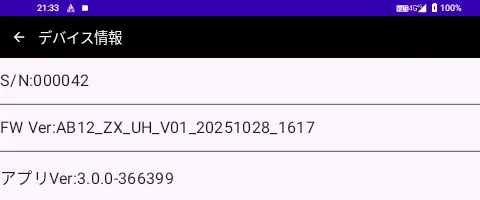 アプリアップデートがある場合、「 デバイス情報 」画面からアプリのアップデートを行うことができます。