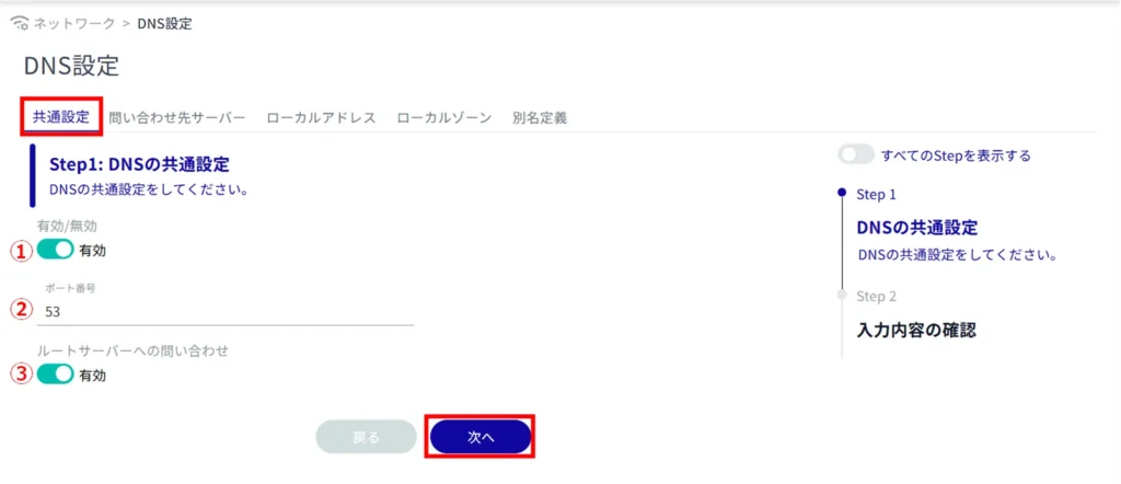 DNS の共通設定をします。