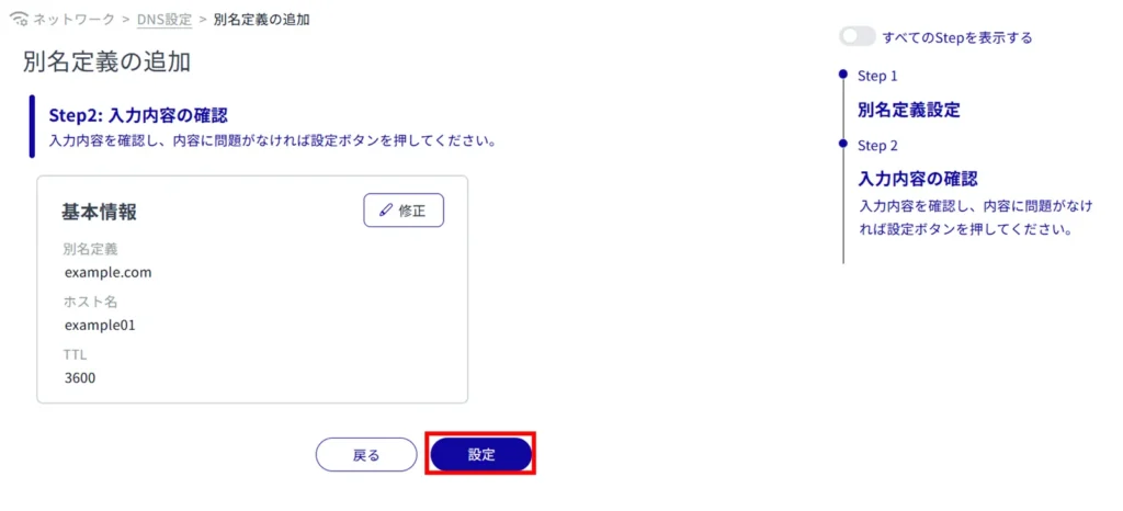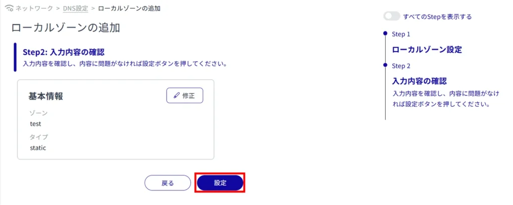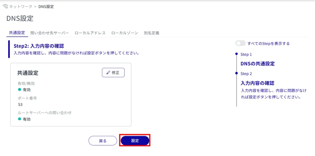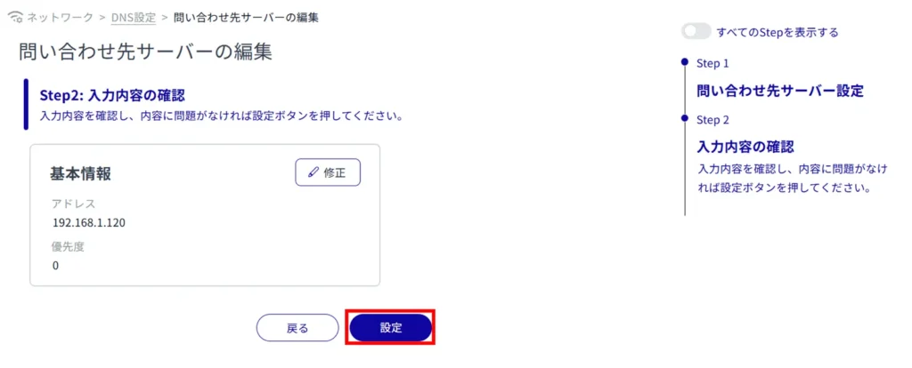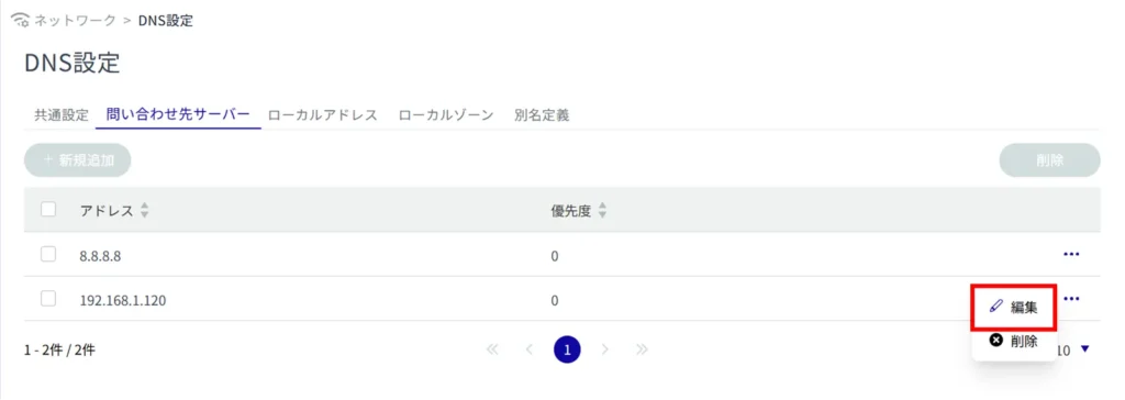 登録されている DNS 設定を編集します。