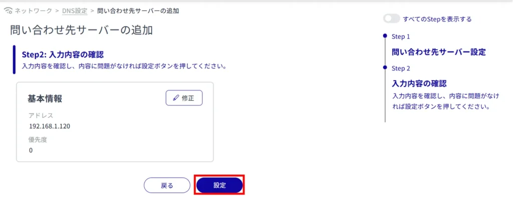 問い合わせ先サーバーの設定をする #