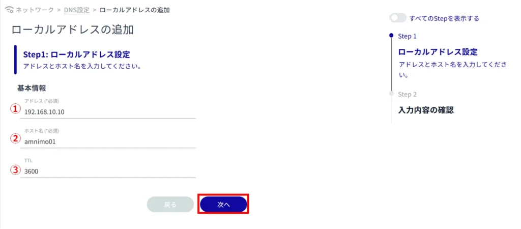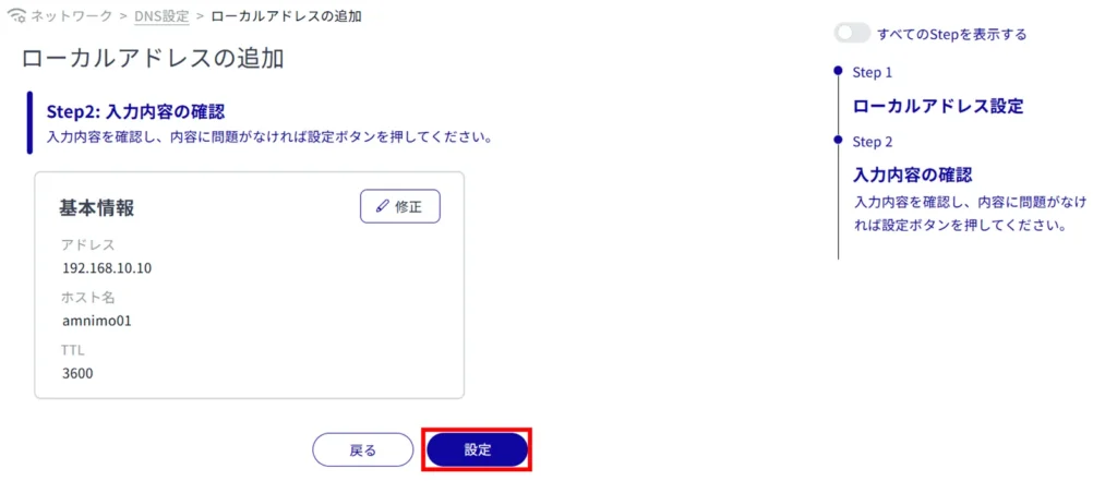 ローカルアドレスの追加が完了します。