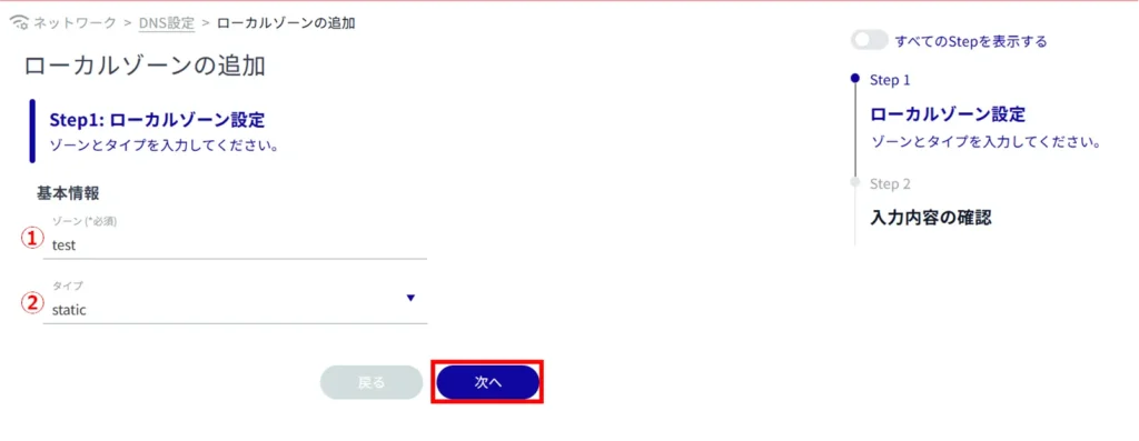 ① 任意のゾーン名を入力します。