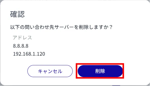 DNS 設定を1つだけ選択して削除することもできます。