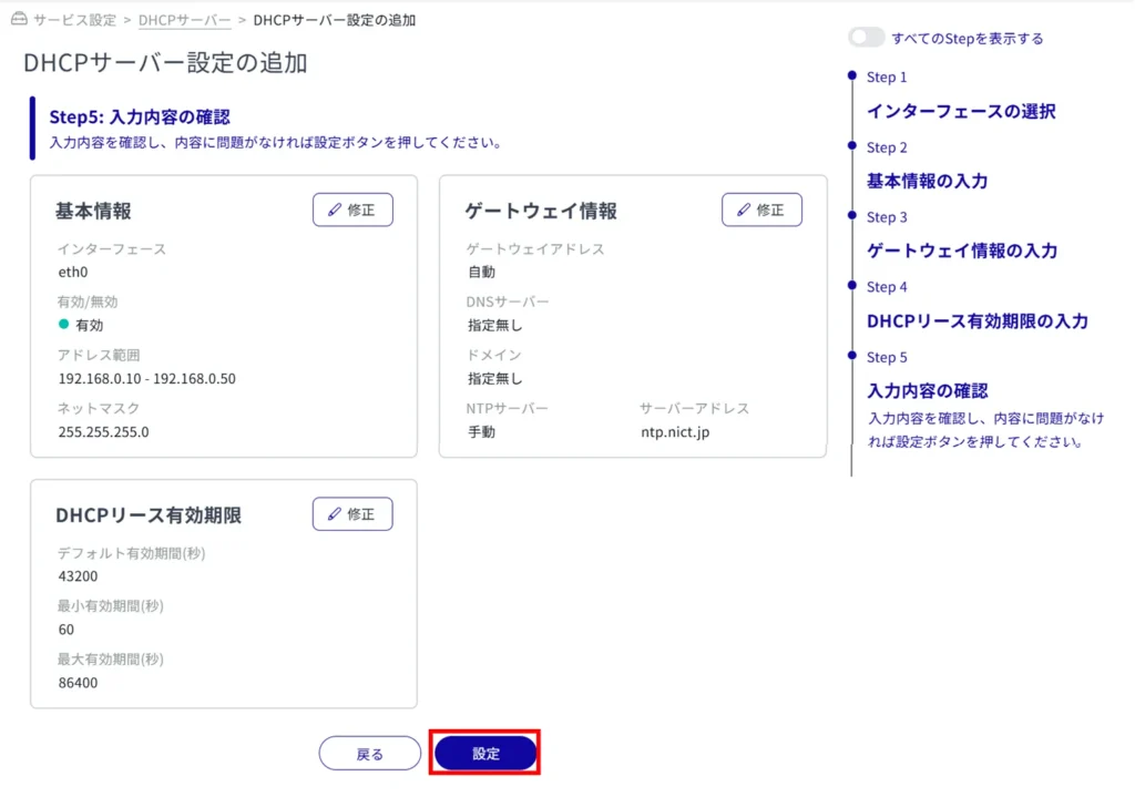 DHCP サーバー設定を追加する #