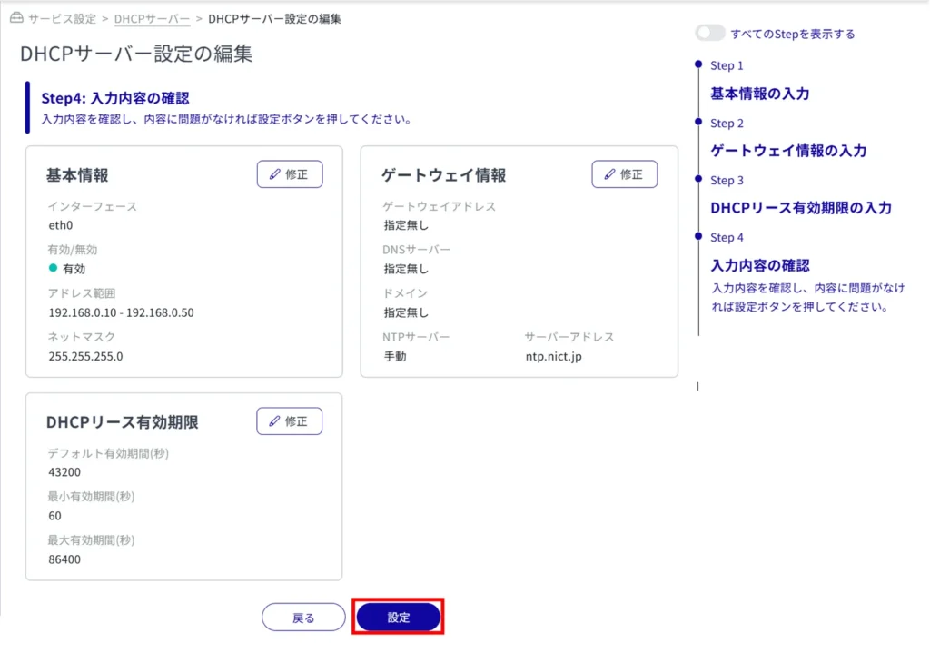 DHCP サーバー設定を編集する #