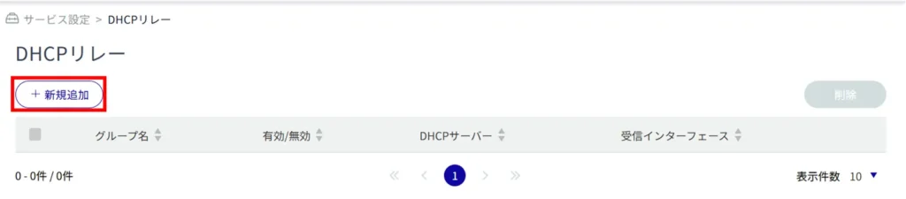 ここでは、DHCPリレー設定の追加、編集、削除を行うことができます。