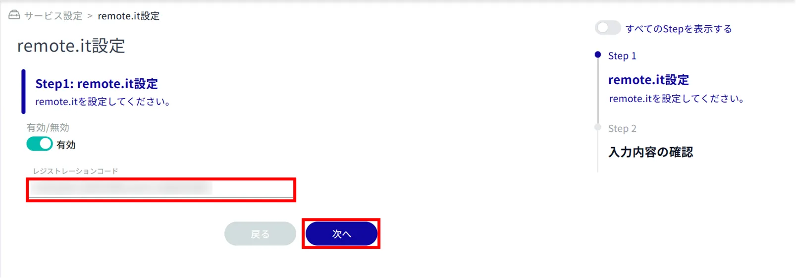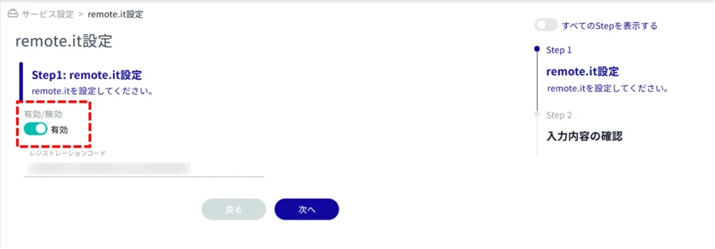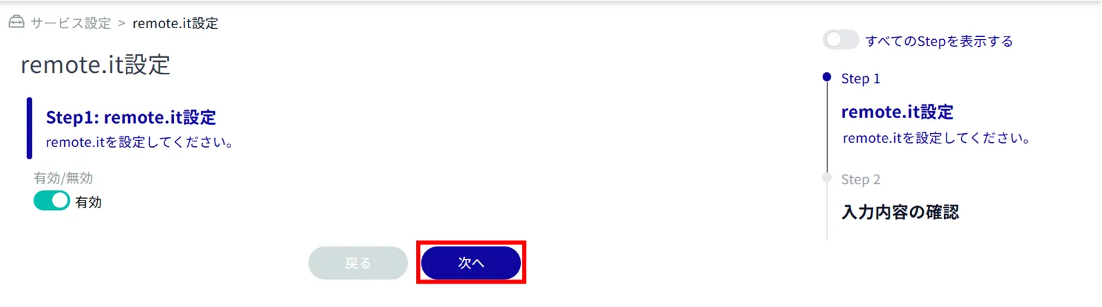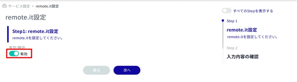 「 remote.it 設定 」を有効にすると、remote.it を利用してデバイスを操作することができるようになります。