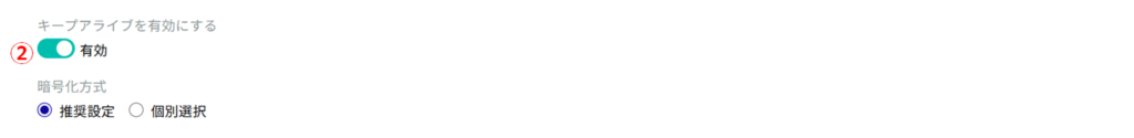 ② 「キープアライブを有効にする」にチェックを付けることで、定期的に keepalive パケットを送信して、SSH 接続がタイムアウトするのを防ぐことが可能です。