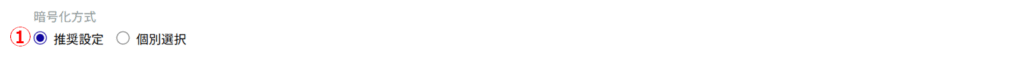 ① 使用する暗号化方式として、[ 推奨設定 ]または[ 個別選択 ]を選択します。