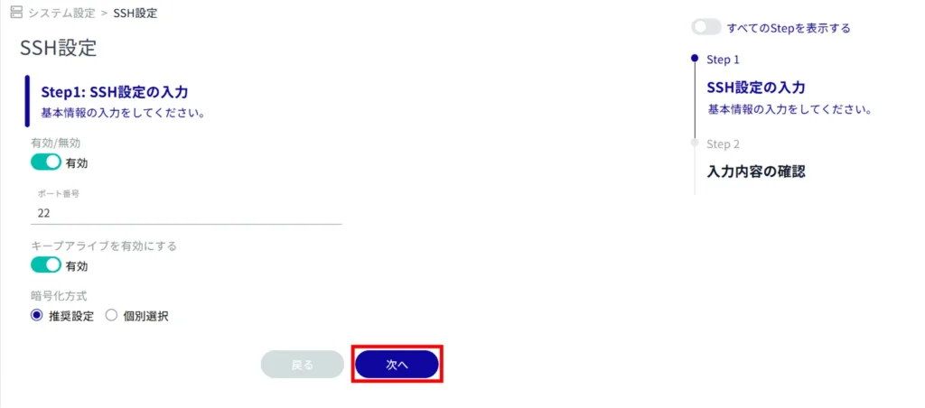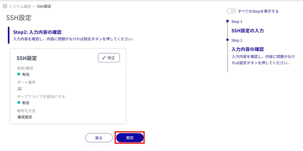 SSH 設定の有効化が行われます。