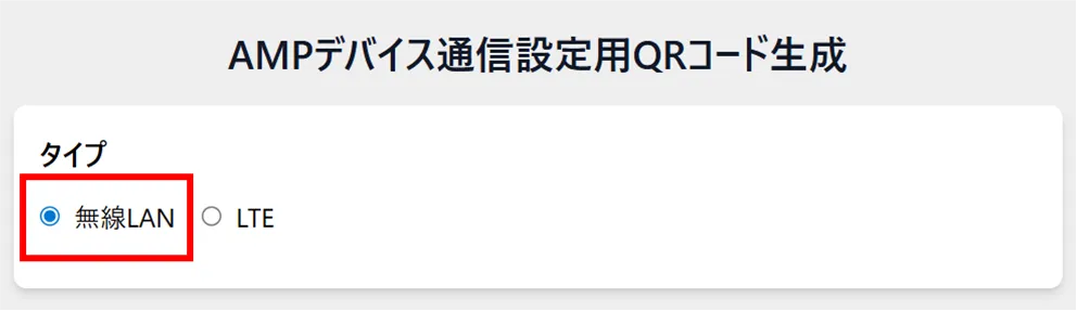アムニモポータブルデバイス NP が接続する無線 LAN の情報を、QR コードとして生成します。