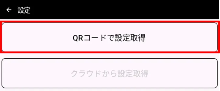 [ QR コードで設定取得 ]をタップします。