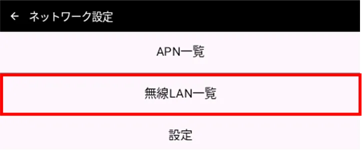 確認したい一覧に応じて、[ APN 一覧 ]か[ 無線 LAN 一覧 ]をタップします。