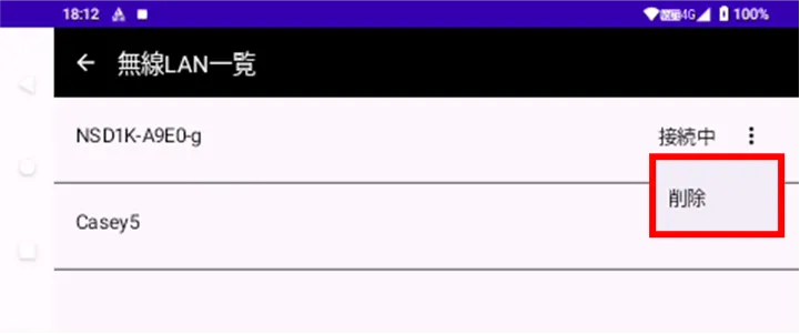 ネットワーク設定を削除する場合は、削除したい APN 設定または無線 LAN 設定の行にある[ ⋮ ]をタップし、表示された[ 削除 ]をタップします。