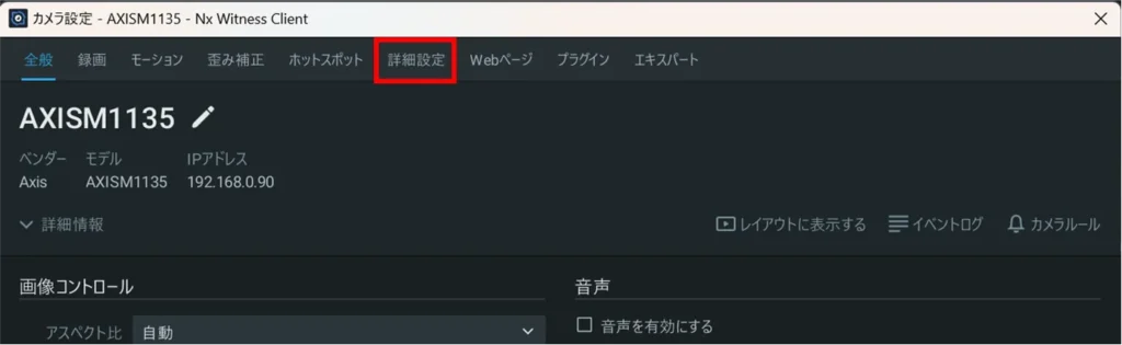 表示されたメニューから[ カメラ設定 ]をクリックします。