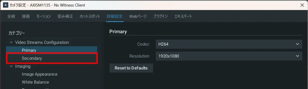 「 詳細設定 」タブにて、[ Secondary ]をクリックします。