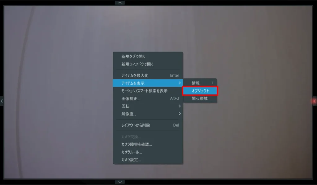 映像を右クリックし、表示されたメニューから[ アイテムを表示 ]>[ オブジェクト ]をクリックします。