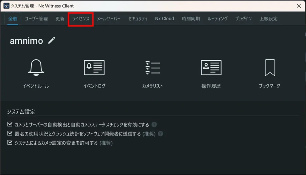 Nx Witness で録画を行う場合はライセンスが必要です。