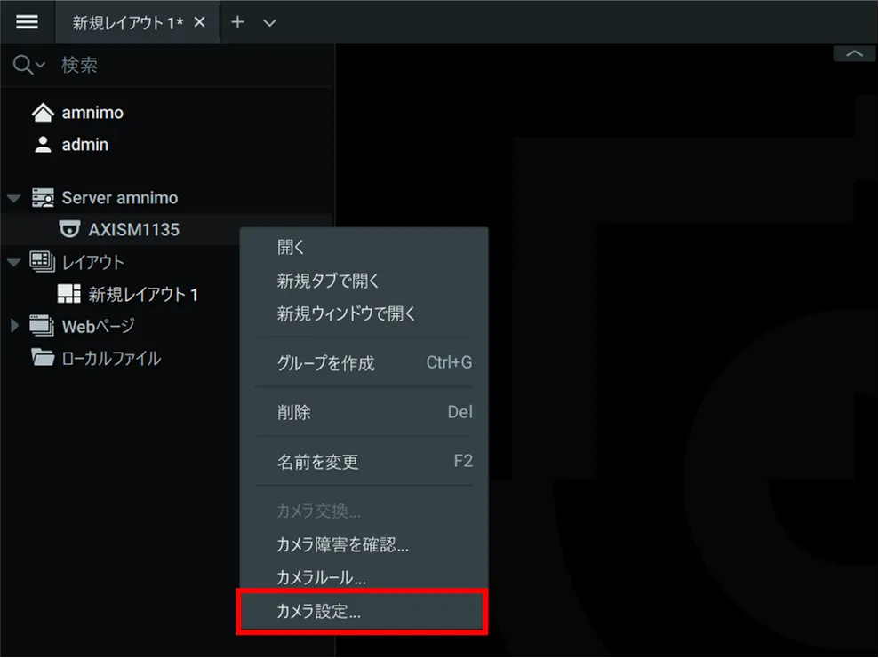 表示されたメニューから[ カメラ設定 ]をクリックします。