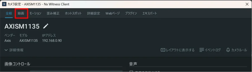 「 カメラ設定 」タブにて、[ 録画 ]タブをクリックします。