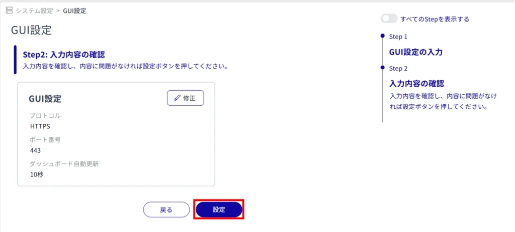 サイドメニューの[ システム設定 ]>[ GUI ]をクリックすると、「 GUI 設定 」画面を開くことができます。