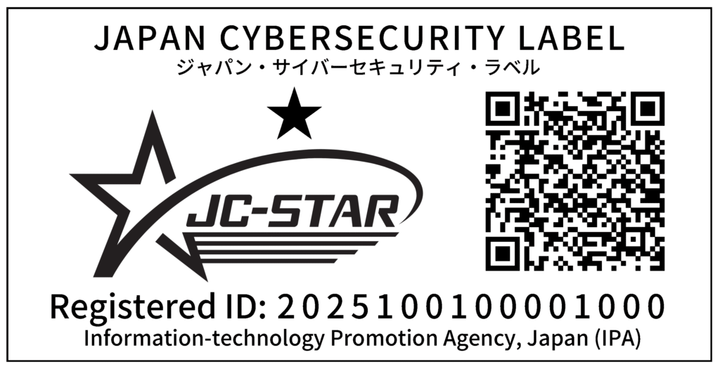 This product has acquired a Level 1 conformance label, which is a standard of the "Security Requirements Conformance Assessment and Labeling System" (JC-STAR system) for IoT products established by the Information-technology Promotion Agency, Japan (IPA).