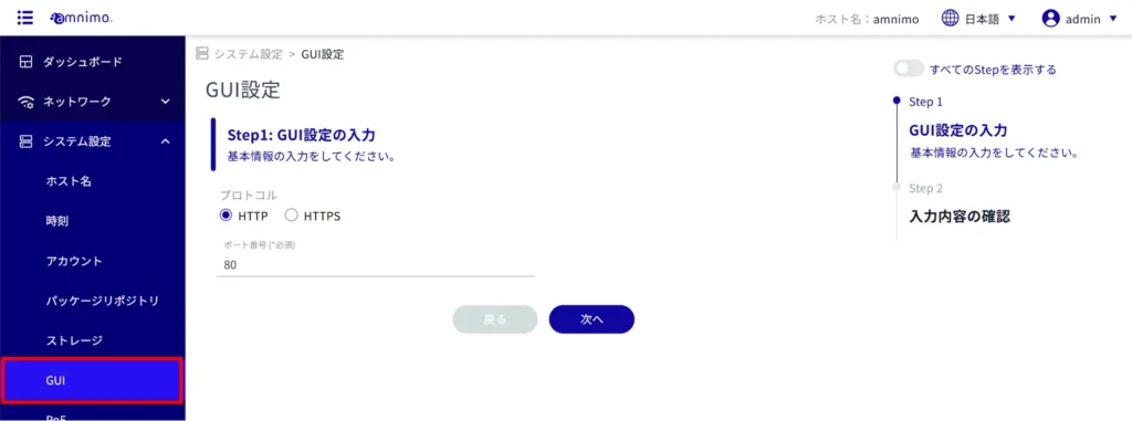 Click [System Settings] > [GUI] on the side menu to open the "GUI Settings" screen.