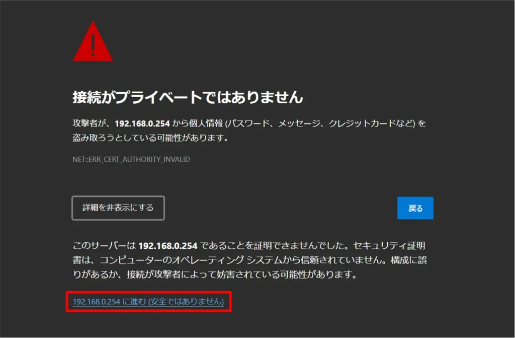 [Click Proceed to 192.168.0.254 (not secure).