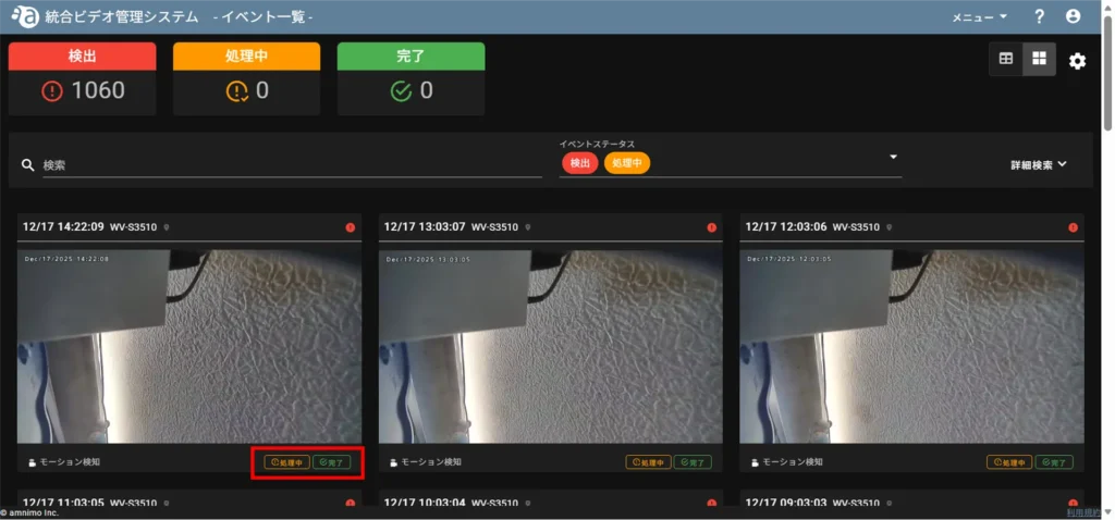 Click on [PROCESSING] or [COMPLETED] under the thumbnail of the event whose status you wish to change.