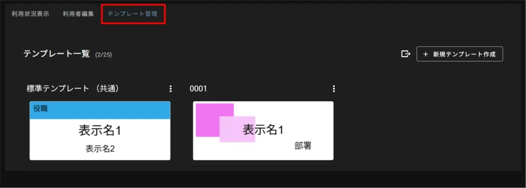 In the "Template Management" tab of the nameplate management, you can register and edit nameplate templates that are displayed on the device's screen.
