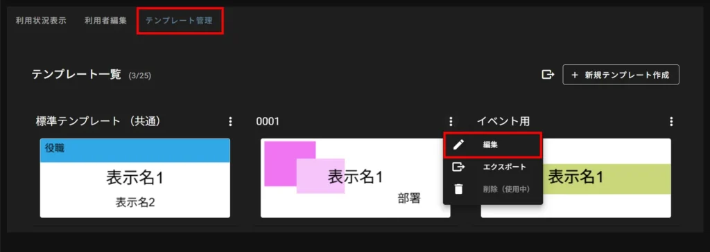 On the "Template Management" tab, click ⋮ on the nameplate template you wish to edit from the "Template List" and select [ Edit ] from the operation menu that appears.