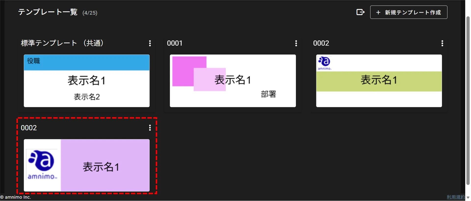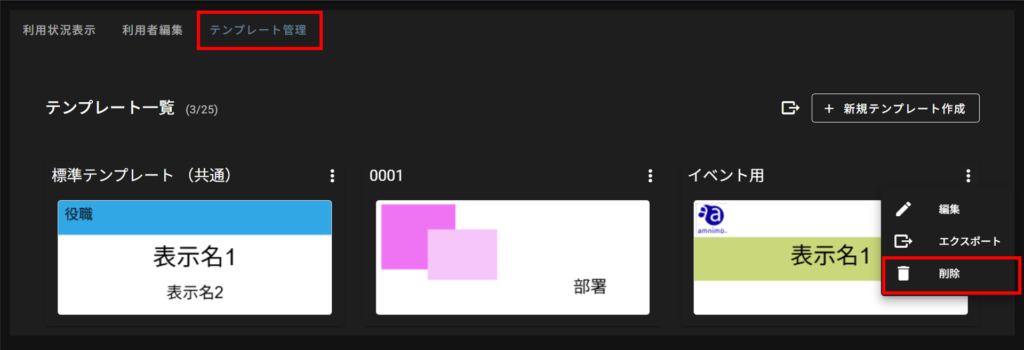 On the "Template Management" tab, click [ ⋮ ] of the nameplate template you wish to delete from the "Template List" and select [ Delete ] from the operation menu that appears.