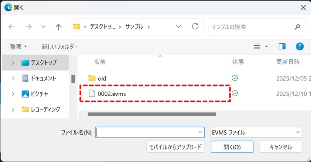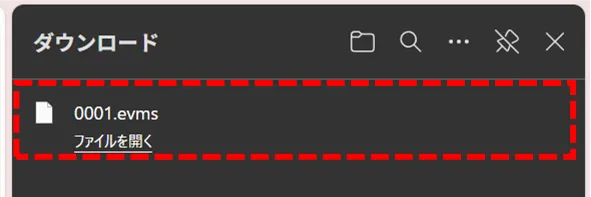 The file is exported as an evms file.