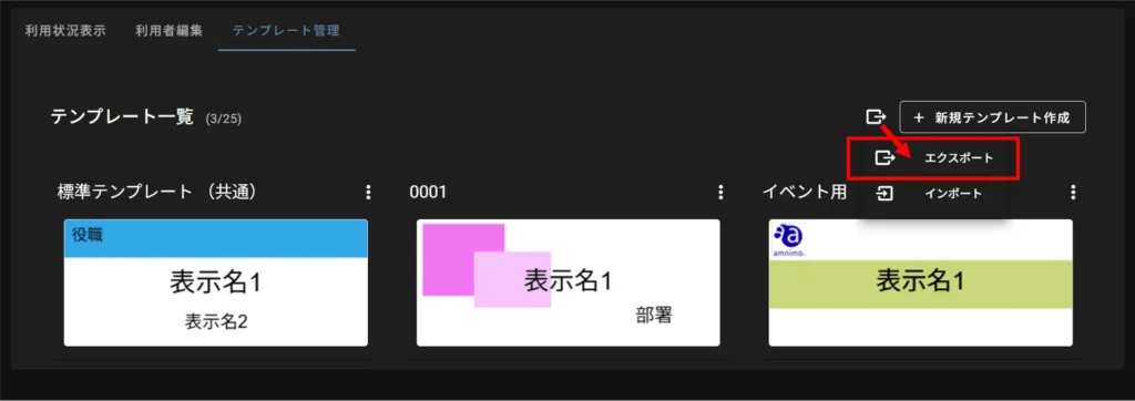 On the "Template Management" tab, click the export icon and select "Export" from the menu that appears.