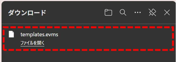 The file name is "templates.evms".