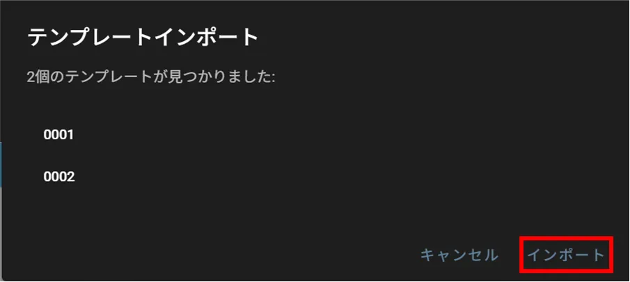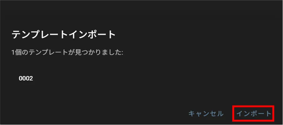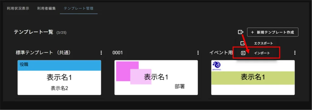 On the "Template Management" tab, click the export icon and select "Import" from the menu that appears.