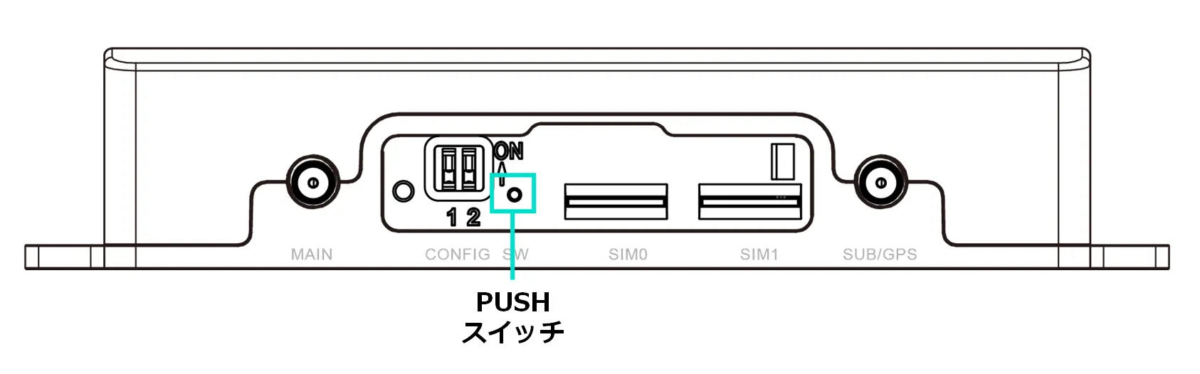 - While the equipment is operating (the startup process is finished and the equipment is fully up), turn off the power by pressing down the PUSH switch on the main unit with a thin object with a sharp tip for at least 3 seconds.